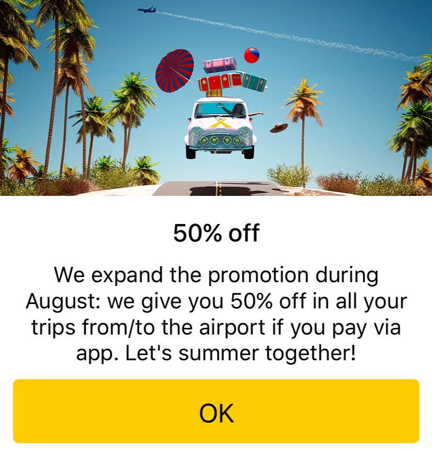 MyTaxi Barcelona brought back its half price offer for trips to or from El Prat airport till the end of August.