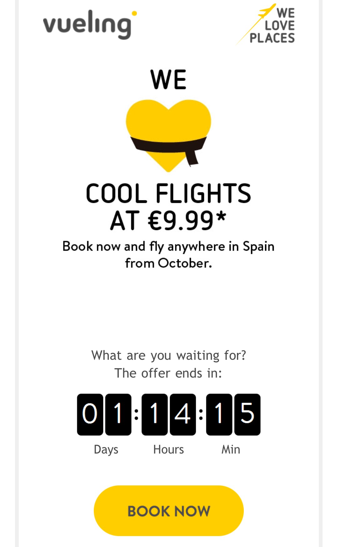 You can book the flights across Spain with Vueling till the end of the day tomorrow from this offer page: http://www.vueling.com/es/promo-domestic?utm_source=newsletter&utm_medium=email&CRM=PES_EN_201708_Domestic_Routes_20170801&spMailingID=29981355&spUserID=ODM1MTU2NTU1MDIS1&spJobID=1100031406&spReportId=MTEwMDAzMTQwNgS2