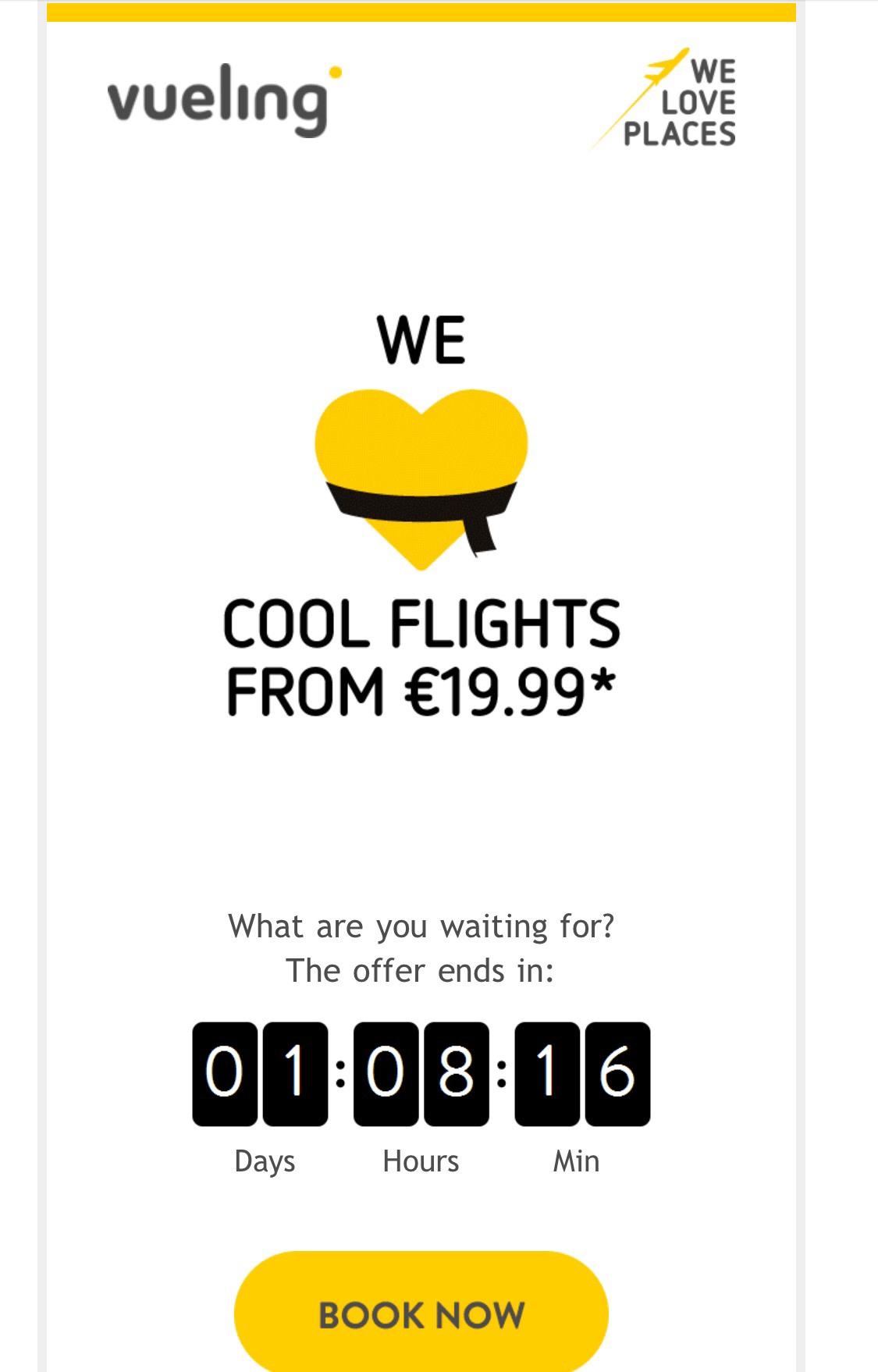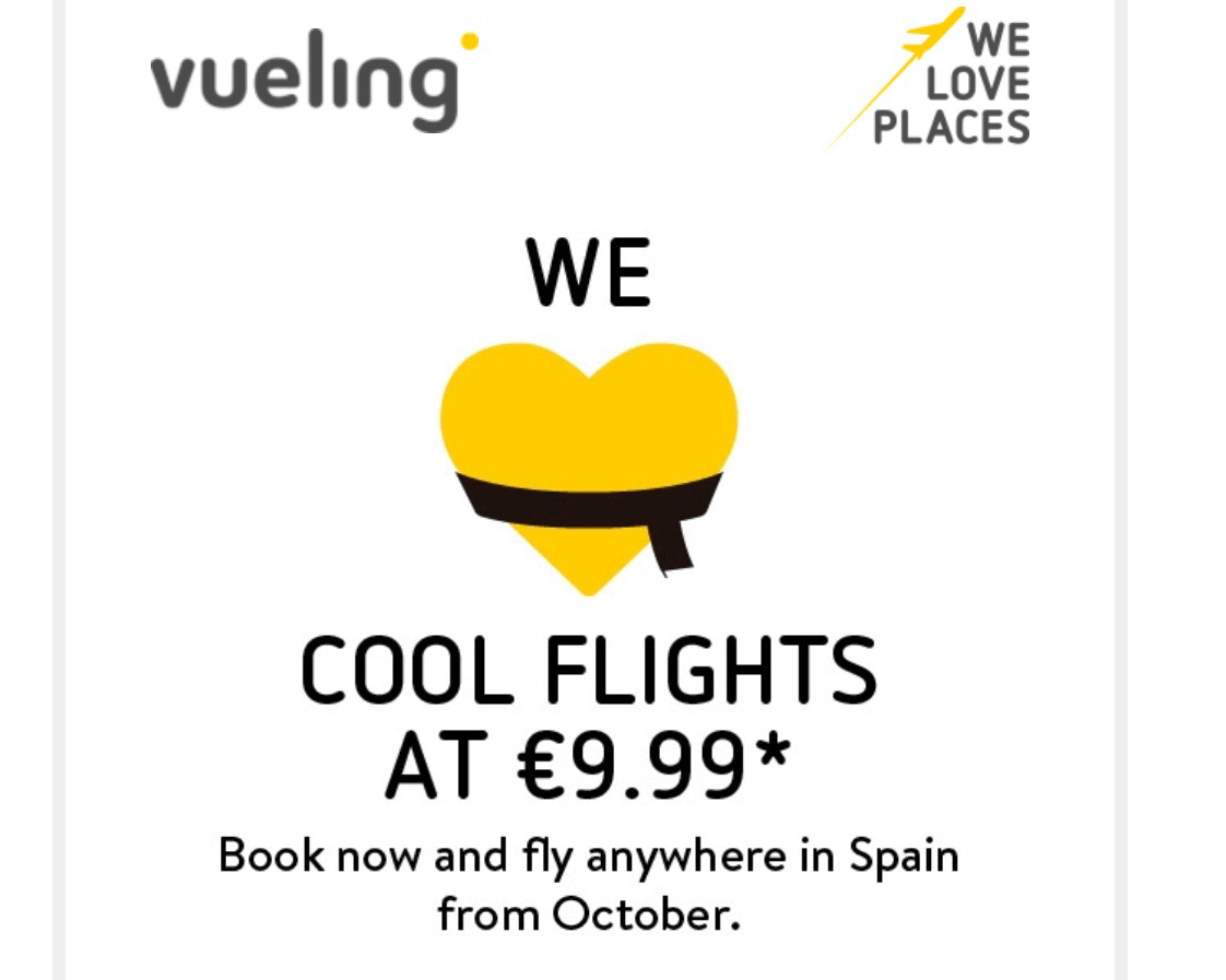 You can book the flights across Spain with Vueling till the end of the day tomorrow from this offer page: http://www.vueling.com/es/promo-domestic?utm_source=newsletter&utm_medium=email&CRM=PES_EN_201708_Domestic_Routes_20170801&spMailingID=29981355&spUserID=ODM1MTU2NTU1MDIS1&spJobID=1100031406&spReportId=MTEwMDAzMTQwNgS2
